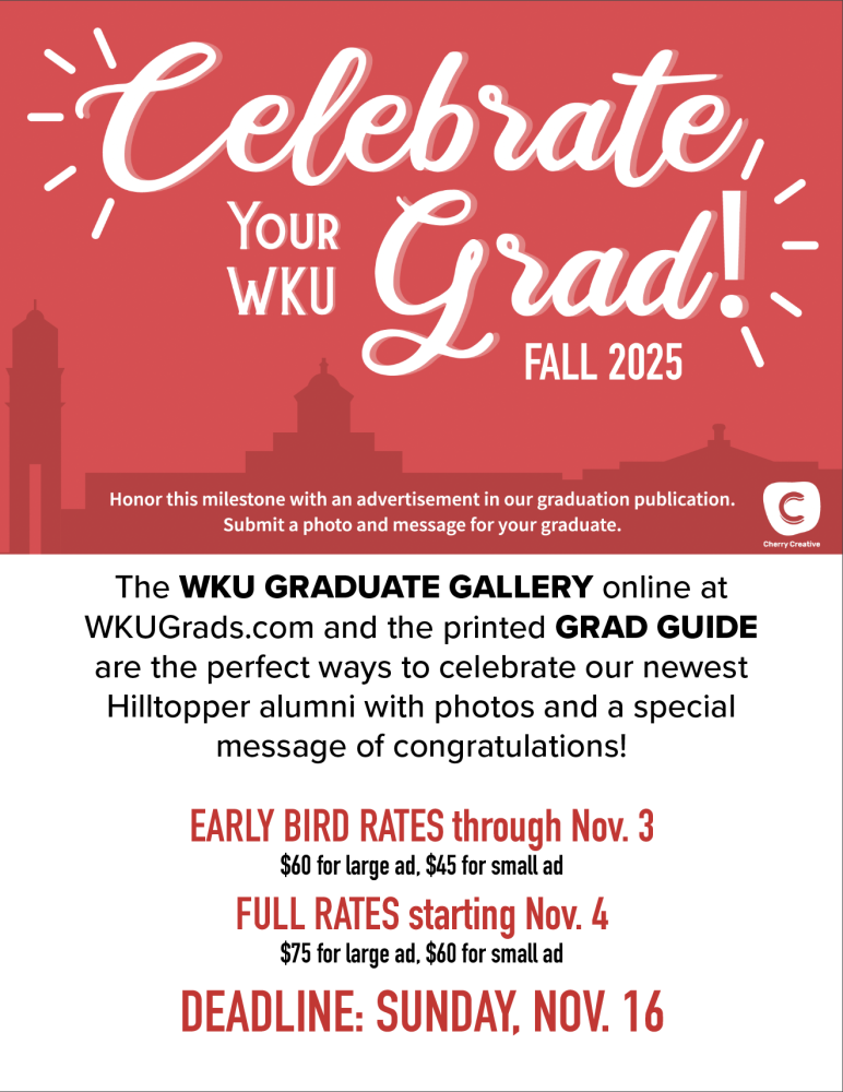 For questions or issues ordering, please contact WKU Student Publications at 270-745-2651 or email Cherry Creative adviser Clinton Lewis at [email protected].